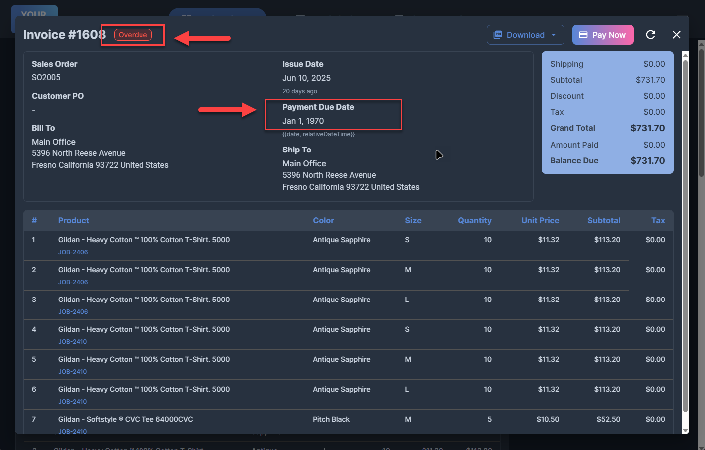 Fixed several issues with invoices: