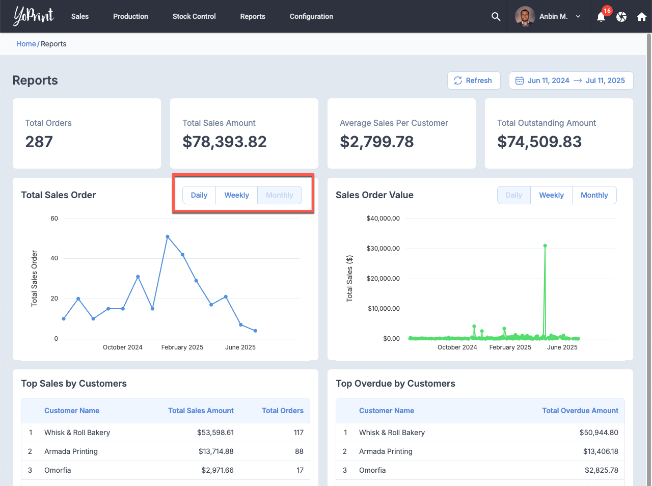- One-click purchase order creation from the dashboard