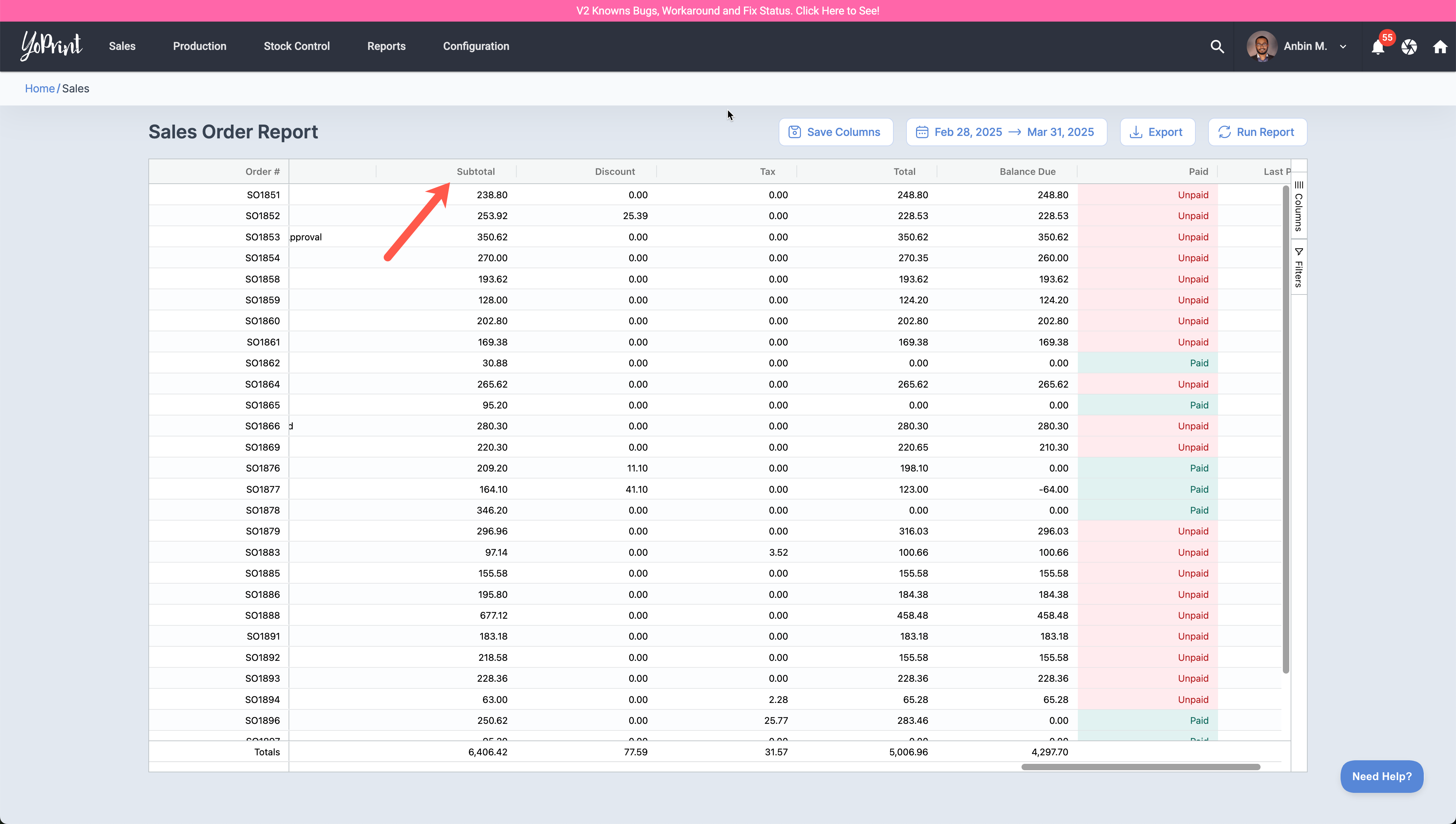 Sales Order Report: Subtotal Column Is Incorrect