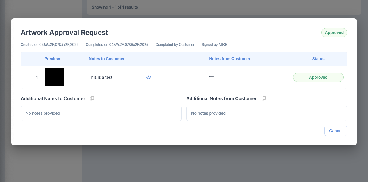 Sometimes the date formatting in the Artwork Approval View Dialog may render incorrectly. This has been fixed.