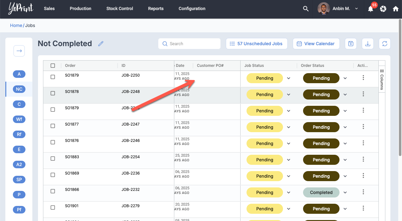 Job List Page: Add Customer PO# Column