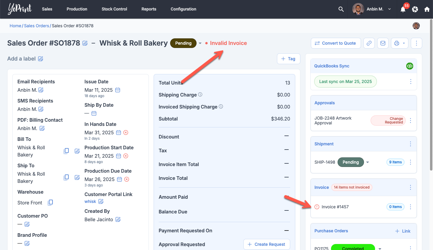 Sales Order Detail Page: Clarify Invalid Invoice