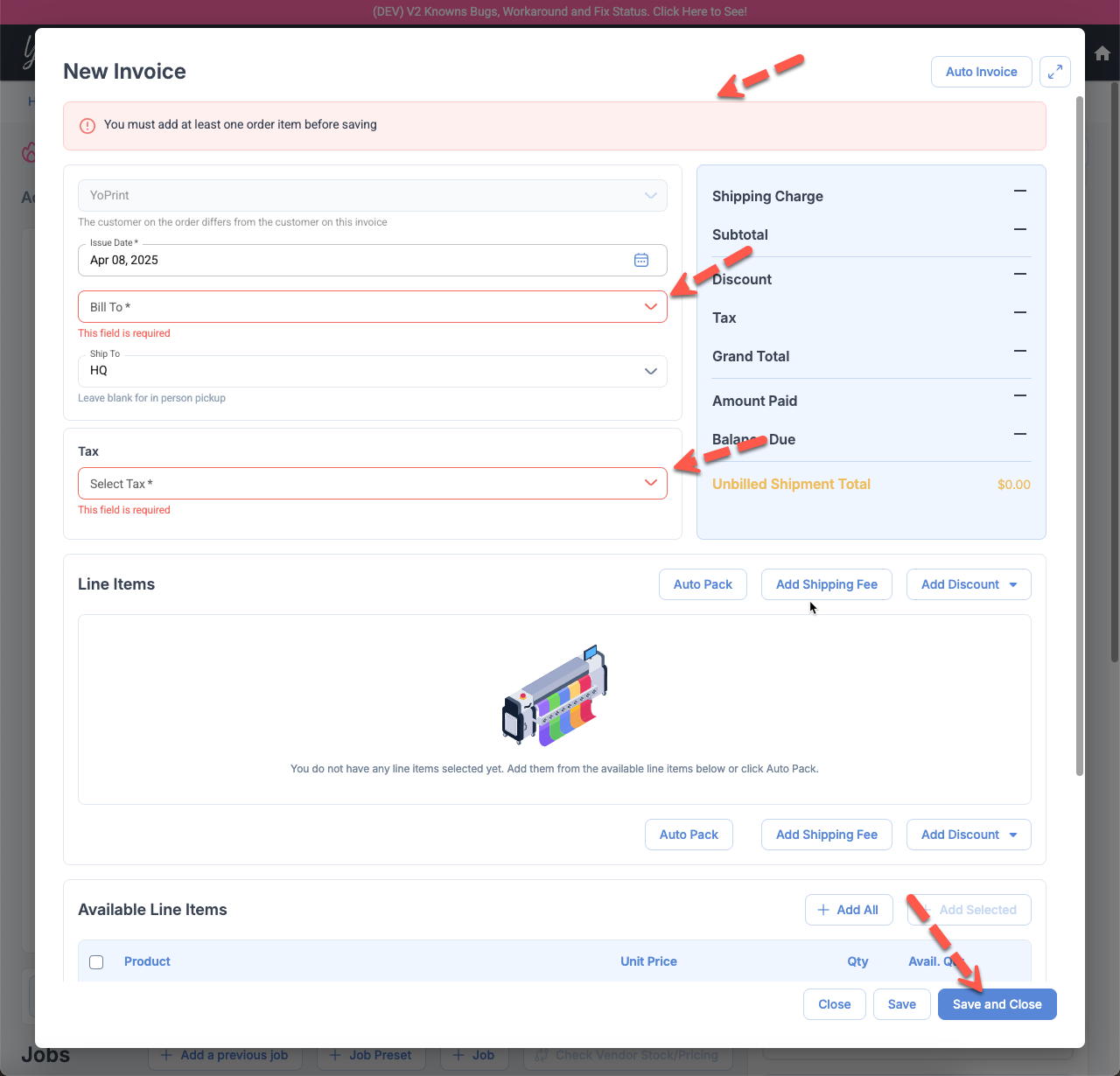 We released an update to remove "Auto Save" for Invoice Detail Dialog and mistakenly enforced Billing Address as Required. This has now been corrected.