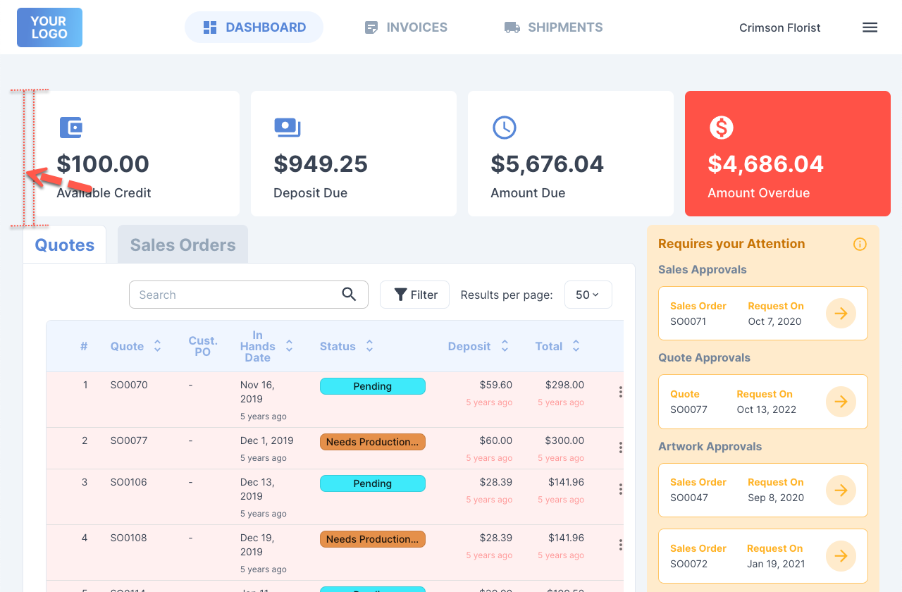 Customer Portal: Dashboard UI Alignment Issue