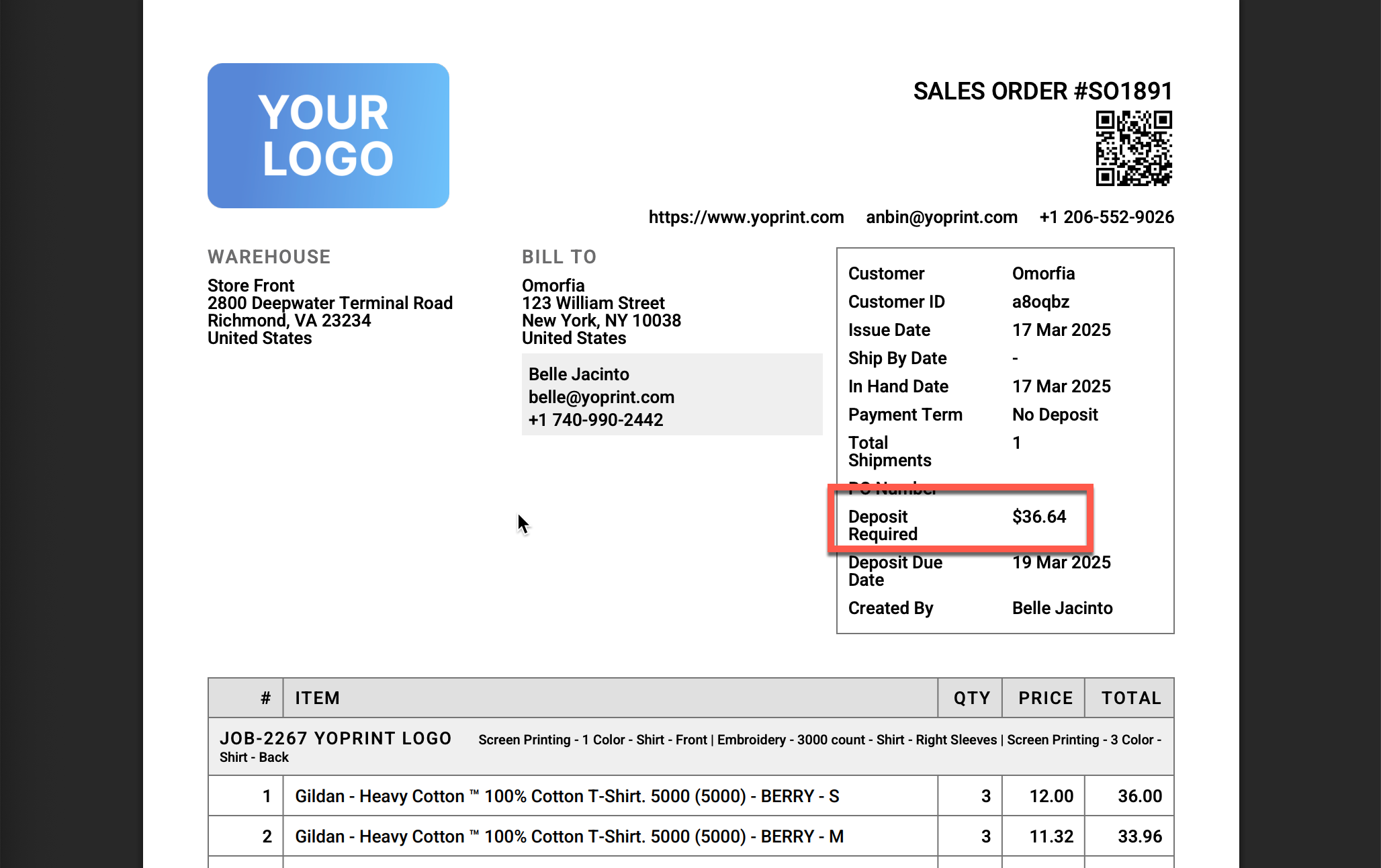 PDF: Sales Order Deposit Should Use 2 Decimals