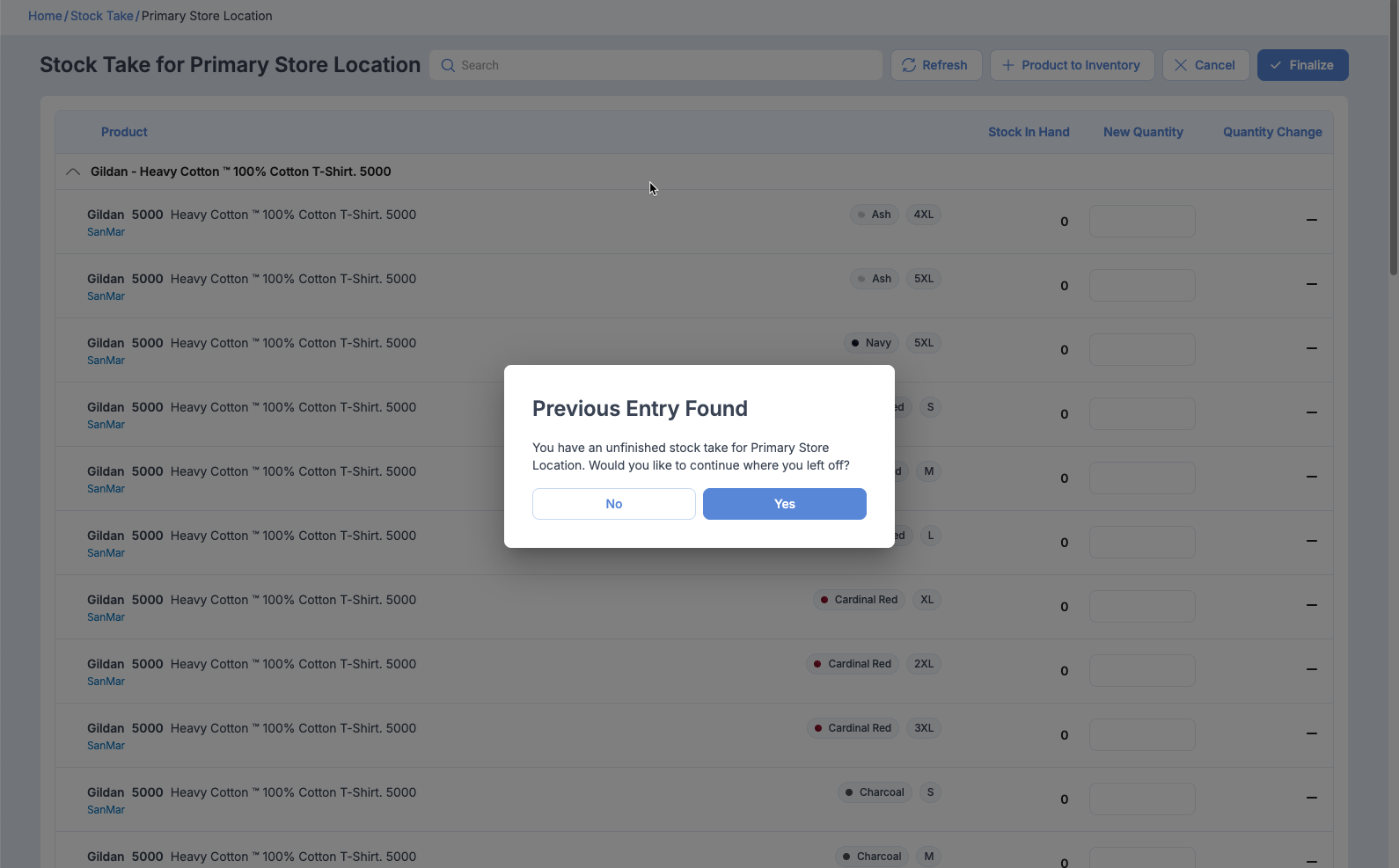 We've also added a new "memory" function where if you accidentally refreshed the page or navigated away, you won't lose your progress. When you go back to the Stock Take page, we will ask you if you would like to pick up where you left off.