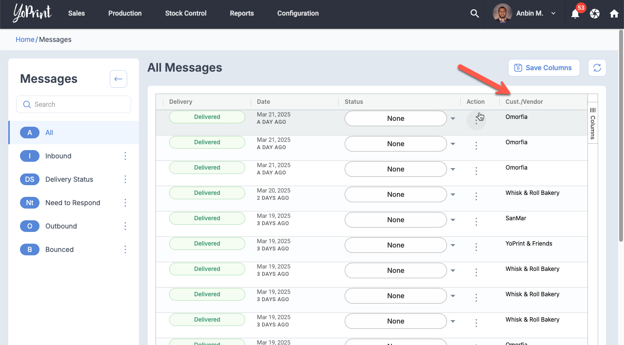 Message List Page: Fix Customer / Vendor Name Sort Bug