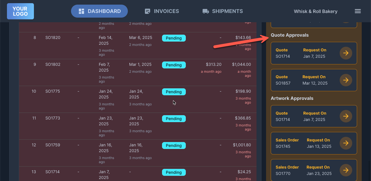 Customer Portal: Quote Approval Is Missing From Dashboard