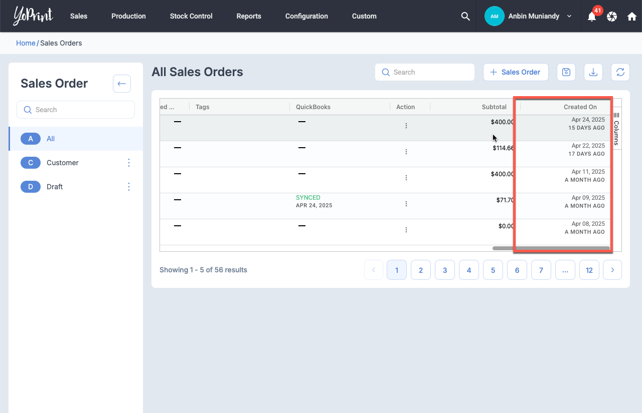We've added Created On column for Sales Order List Page so that you know when the Sales Order was created vs the Issue Date.