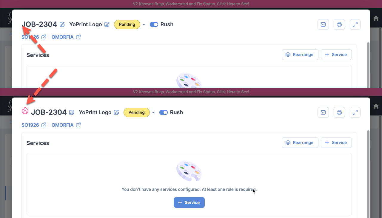 We've added the missing Rush Icon to the Job Detail Dialog.