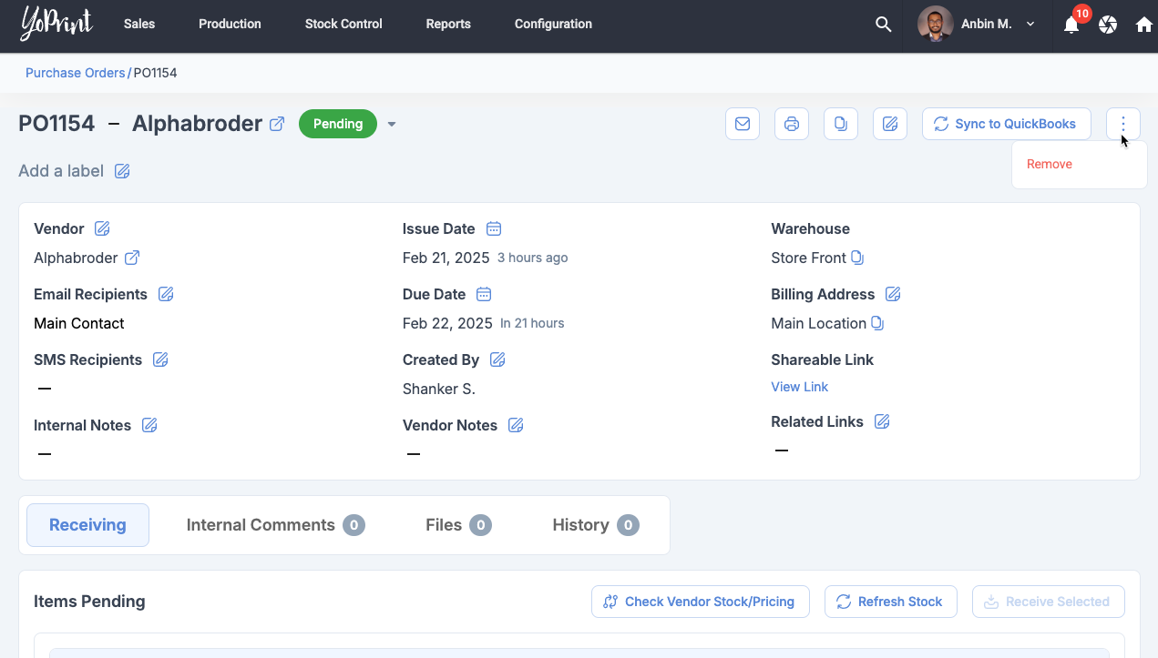 The option to delete a Purchase Order from the Purchase Order Detail Page was missing. This has now been added.