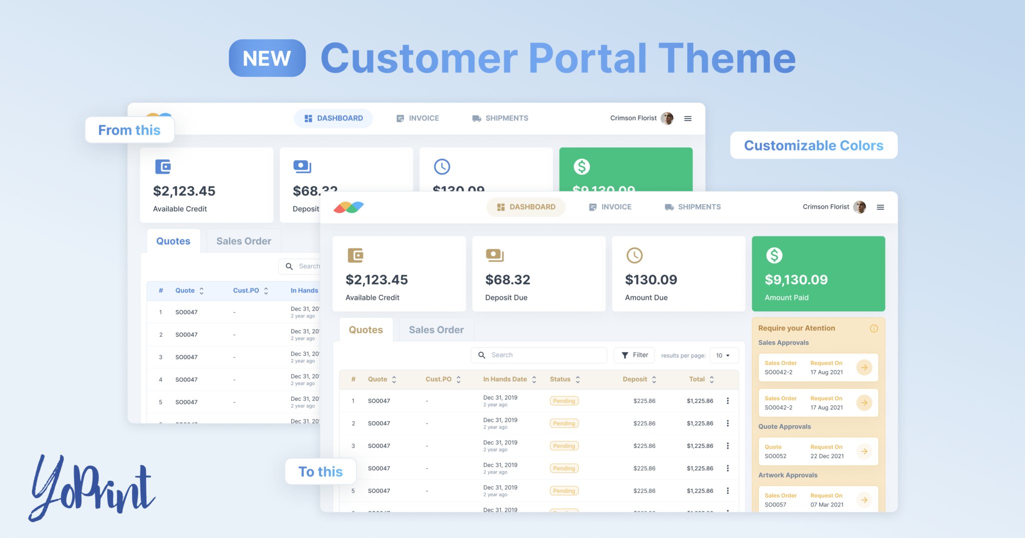 Take your customer portal to the next level with YoPrint’s latest feature – customizable themes. Choose your colors to create a portal that reflects your brand and style.