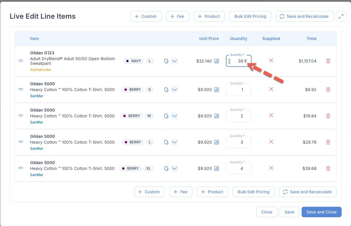 Streamlined Quantity Entry