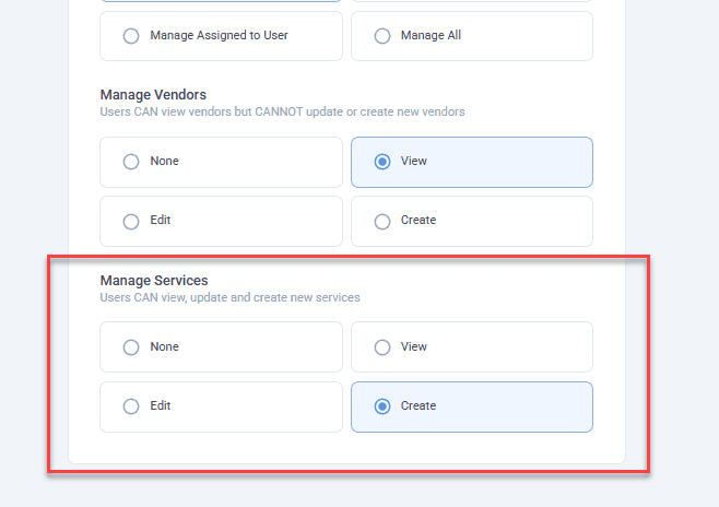 Permission groups now offer granular controls that allow or restrict view, edit and creation of Services.