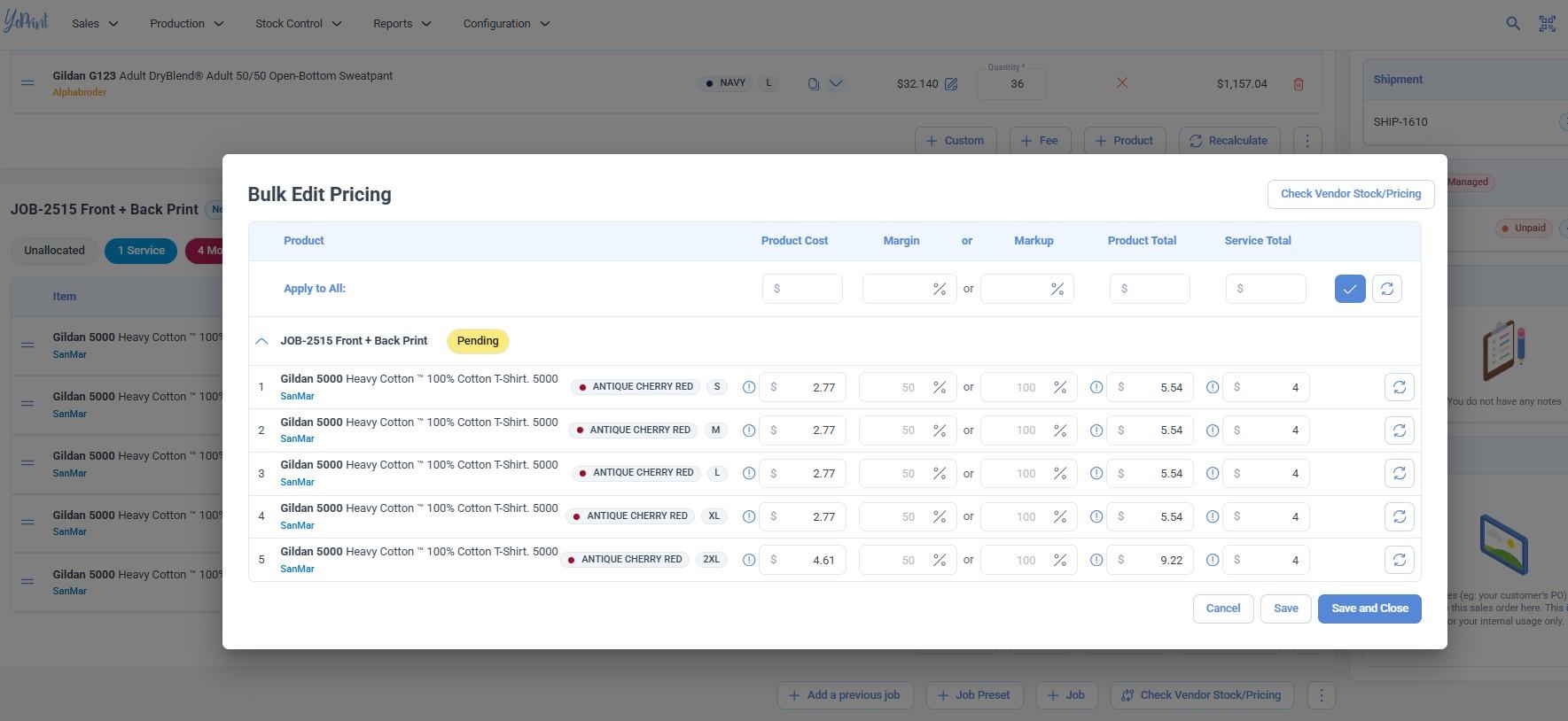 We’ve added a bulk edit pricing tool that lets you update pricing all at once. You can now specify custom markups/margins at either the entire order level or on a per-job basis — giving you greater flexibility and efficiency when managing pricing.