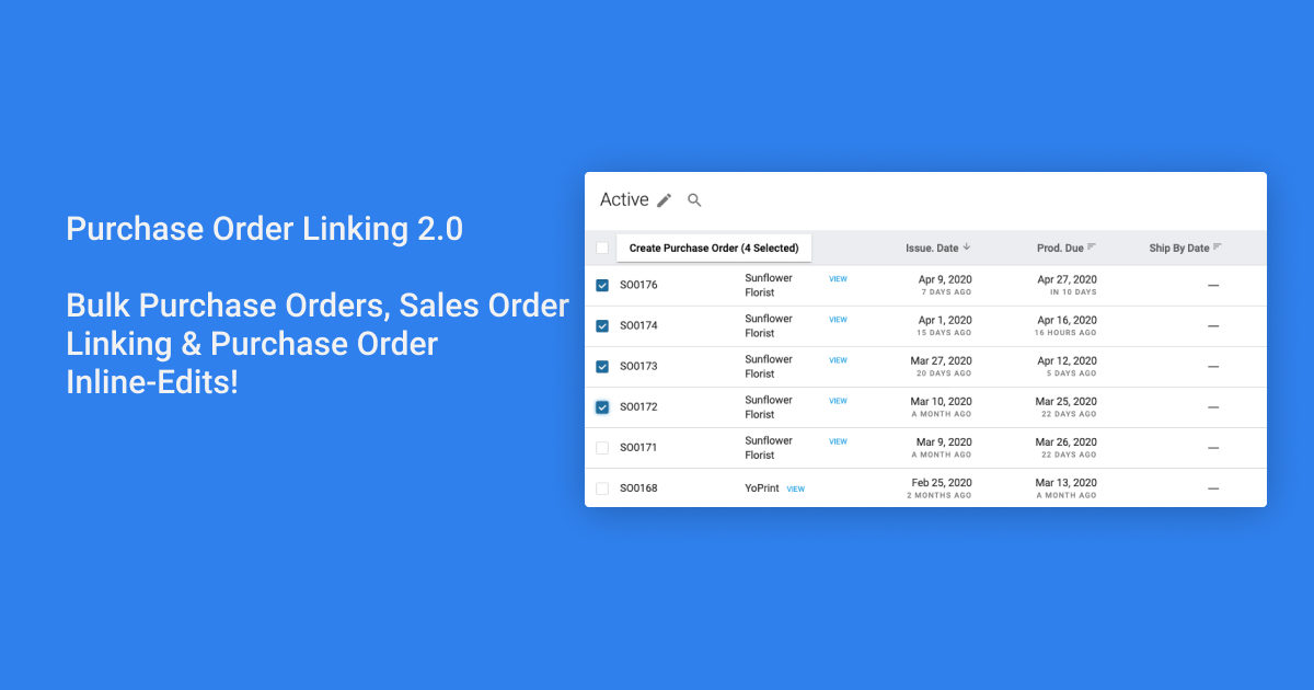 The next installment of YoPrint 2.0 is here! We have re-written our Sales Order – Purchase Order Linking system from the ground up and finally gave it the facelift it deserves.