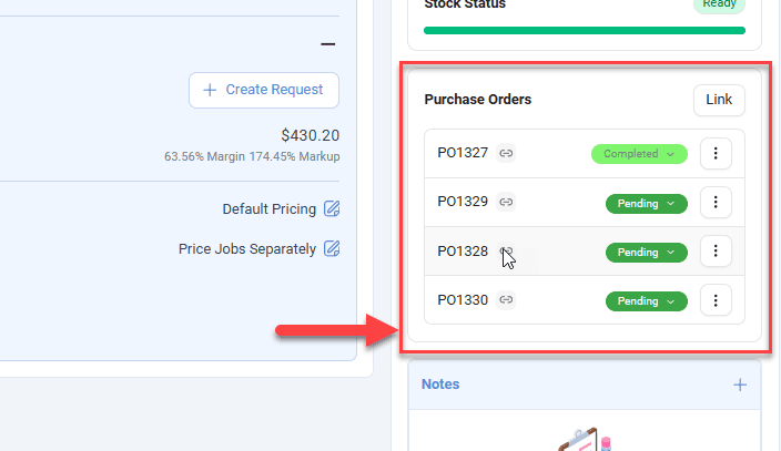 Purchase Orders linked to a Sales Order are now shown in a single unified list on the detail page, replacing the separate System and Manual sections. Manually linked POs are marked with a subtle badge, and duplicate entries have been removed for a cleaner view.