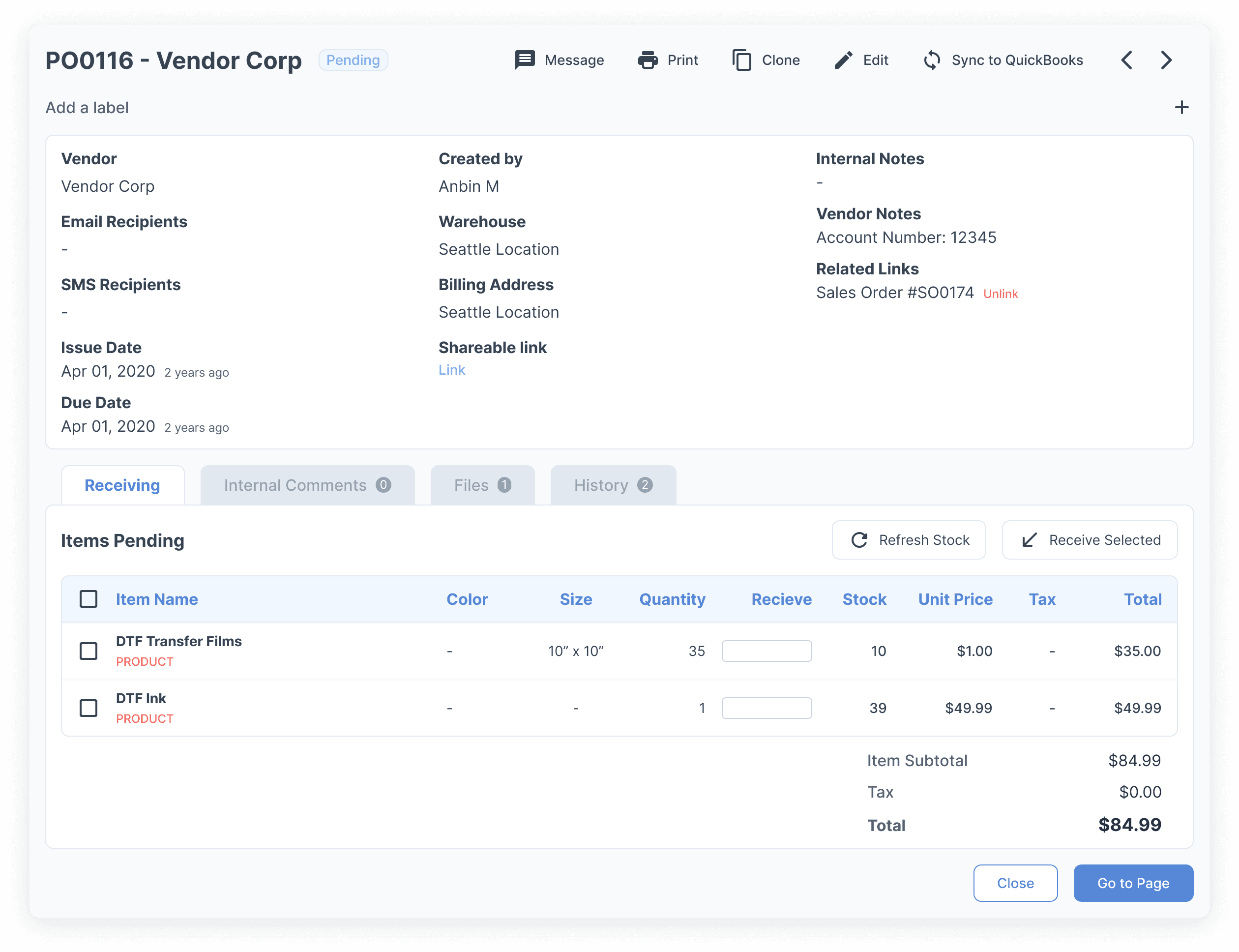 Need to order some rolls of DTF transfer film, DTF ink, or hot melt powder? Create a purchase order right in YoPrint, and send it to vendors with ease. You can choose from a ‘message’ button in YoPrint that emails the PO directly to the vendor’s inbox, or you can choose to share a link. It’s vendor communications made easy.