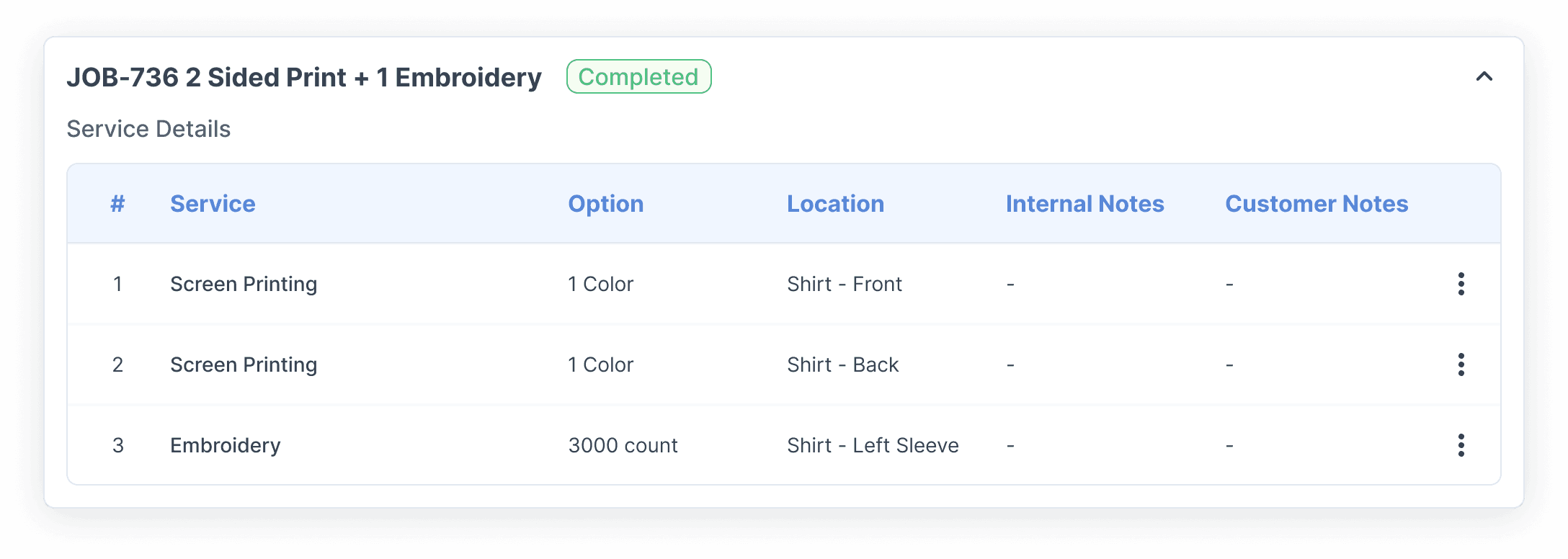Need to screen print the back of a shirt and embroider the front? Or maybe a customer is asking for some DTG prints as well as some embroidery work. Whatever the case, YoPrint's got you covered. You can combine embroidery with other decorating processes into one sales order for easy invoicing, and separate it into different jobs for efficient scheduling. It’s a system that guarantees customer convenience, and business productivity.